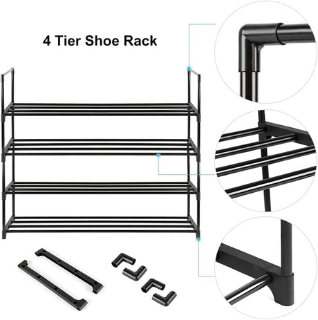 4-Tier Stainless Steel Shoe Rack Storage Organi...