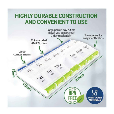 AM/PM Weekly Pill Box 7 Day Tablet Medicine Org...