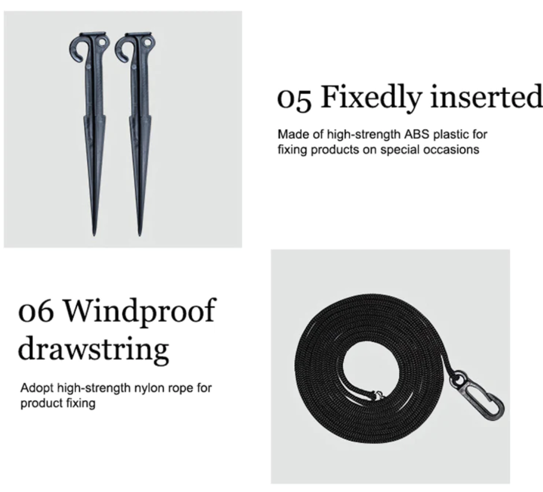 - Comes with pegs and rope for secure outdoor positioning
