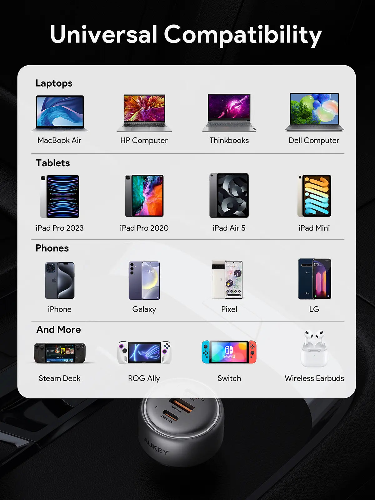 Aukey Pathfinder Mix 3 66W Fast Charging Car Charger (CC-P1) 0.088 kg