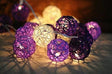 1 Set of Purple n White 5cm Rattan Cane 50 Ball Battery Powered LONG 5m String Lights Christmas Gift Home Wedding Party Bedroom Decoration Table Centrepiece 0.15 kg