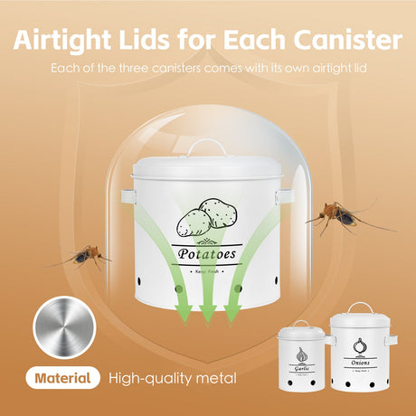 3 pcs Galvanised Iron Fruit Vegetable Storage Tins