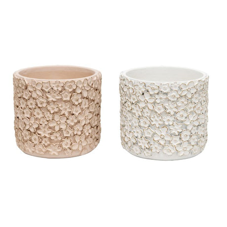 Set 2 Asst Flower Embossed Planters w Hole + Pl...