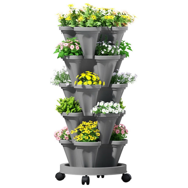 Green Fingers Raised Garden Bed 5 Tier Vertical Garden Grey Strawberry Stackable Planters Herbs Petunias 2.5 kg