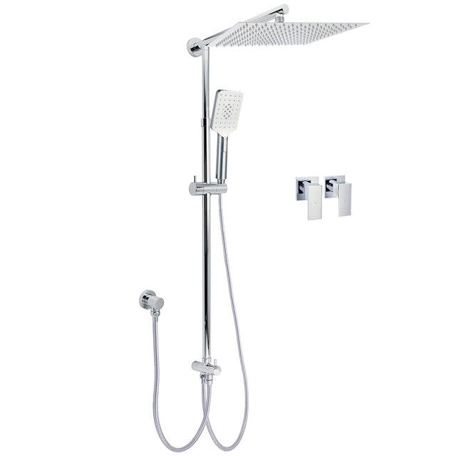 Double Square Shower Head 12" Rain Rose + 3 Modes Handheld Diverter Rail Arm Taps Set