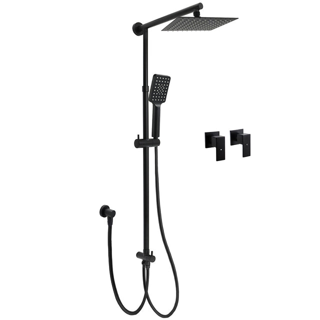 Matt Black 2in1 Set 8" Square Thin Shower Head Handheld Adjustable Silding Rail Twin Taps