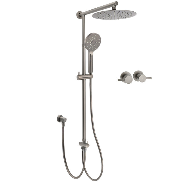 WELS Gun Metal 2in1 Round Shower 10" Rain Head 3 Mode Handheld Sliding Rail Twin Taps Set