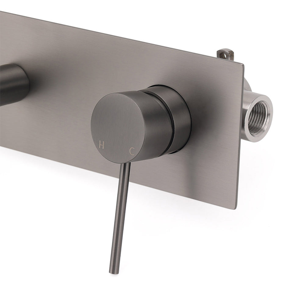WELS Gun Metal Round Wall Basin Mixer Vanity Sink Tap Hot Cold Faucet Spout
