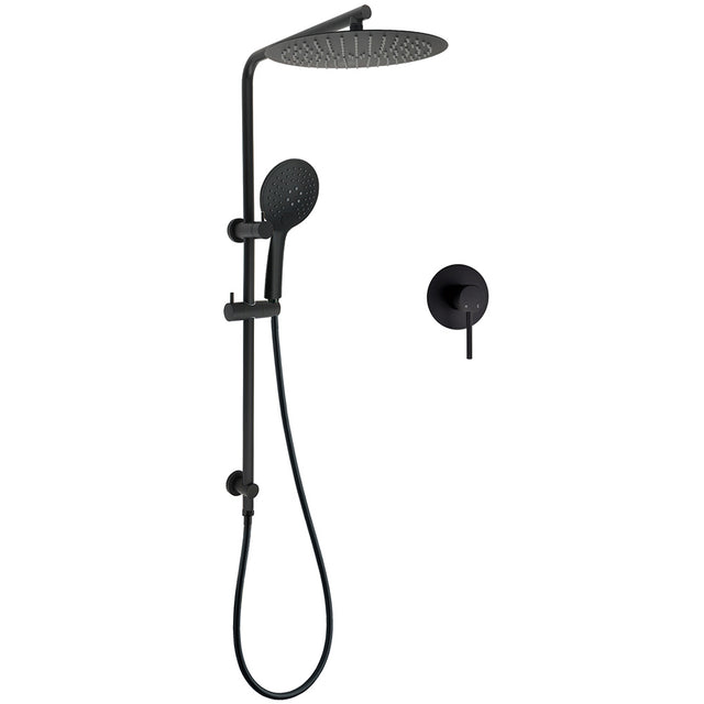 WELS Matt Black Shower Set 12" Large Rain Head Handheld Sliding Rail Arm Round Mixer