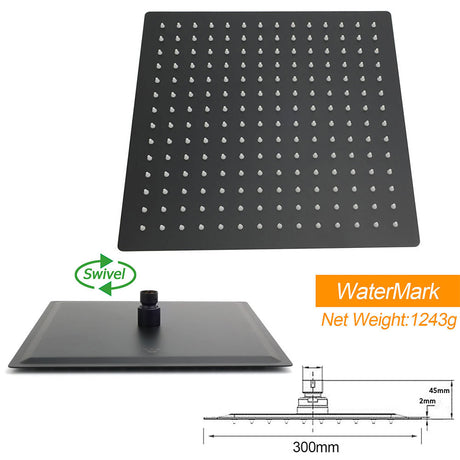 WELS Matt Black Dual Shower Large 12" Square He...