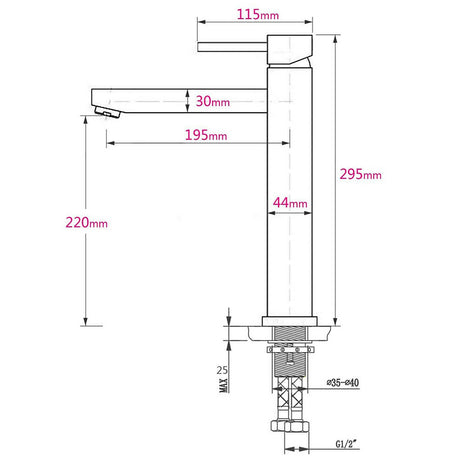 WELS Matt Black Round Tall Basin Mixer Vanity B...
