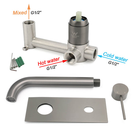 WELS Gun Metal Square Wall Mount Basin Mixer La...