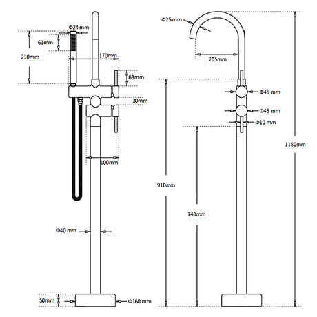 WELS Matt Black Bathtub Filler Free Standing Mi...