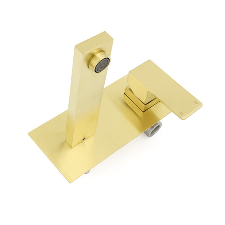 Brushed Gold Square Wall Mount Basin Mixer Laun...
