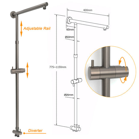 WELS Gun Metal 2in1 Round Shower 10" Rain Head ...