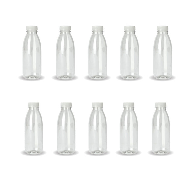10x 300ml PET Juice Bottles + Tamper Evident Caps - Empty Plastic Recyclable Clear 0.35 kg