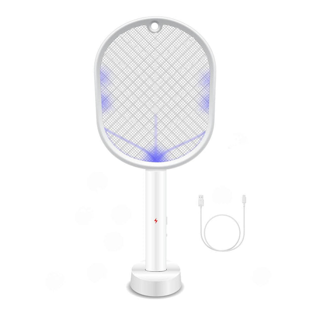 This 2 in 1 rechargeable insect swatter can be used by hand, to manually dispose of annoying insects like flies or mosquitoes, or set in it's stand with the UV light on to attract these bugs without having to use the item itself.