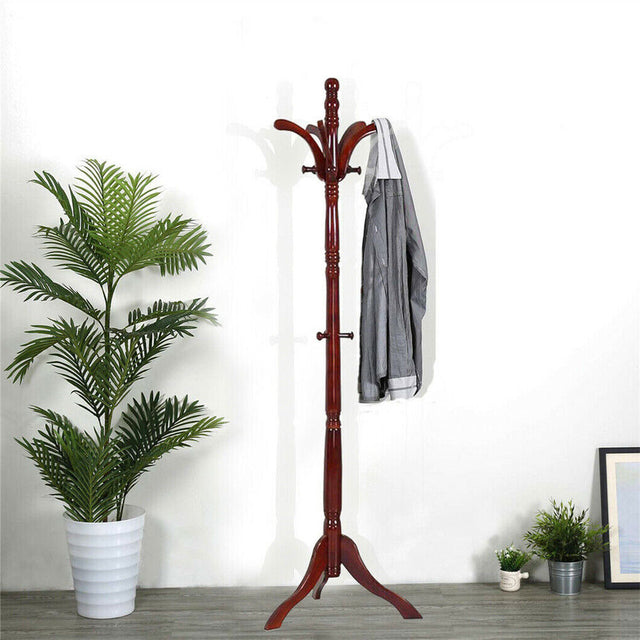 Birch Wood Coat Rack Stand Adjustable Hall Tree Entryway 3.0 kg
