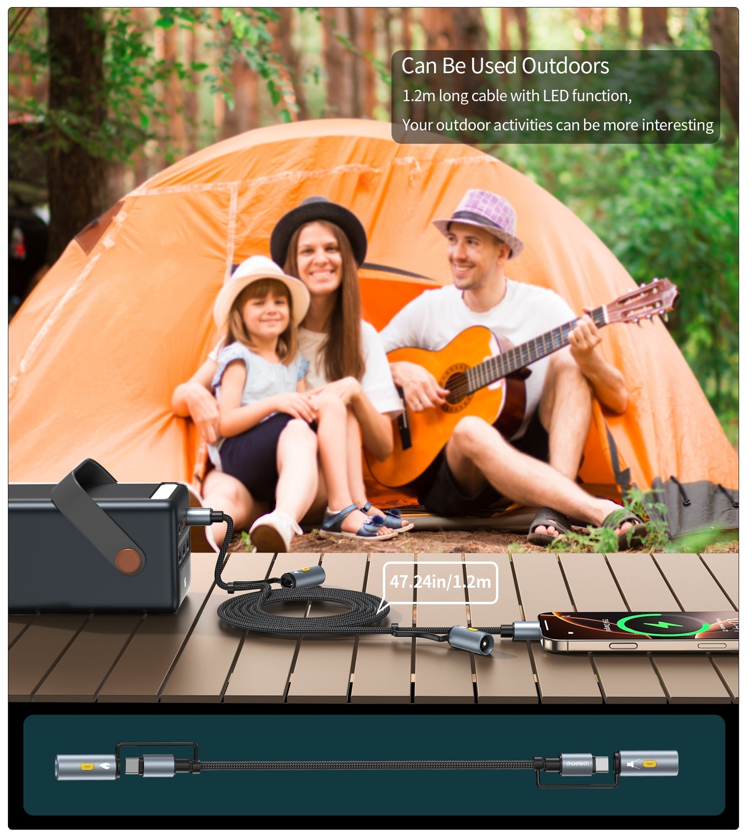 This braided USB-C to USB-C cable includes on lamp for clear lighting and a built-in cigarette lighter connector, making it perfect ofr both home and travel use.durable and reliable ofr all your needs!